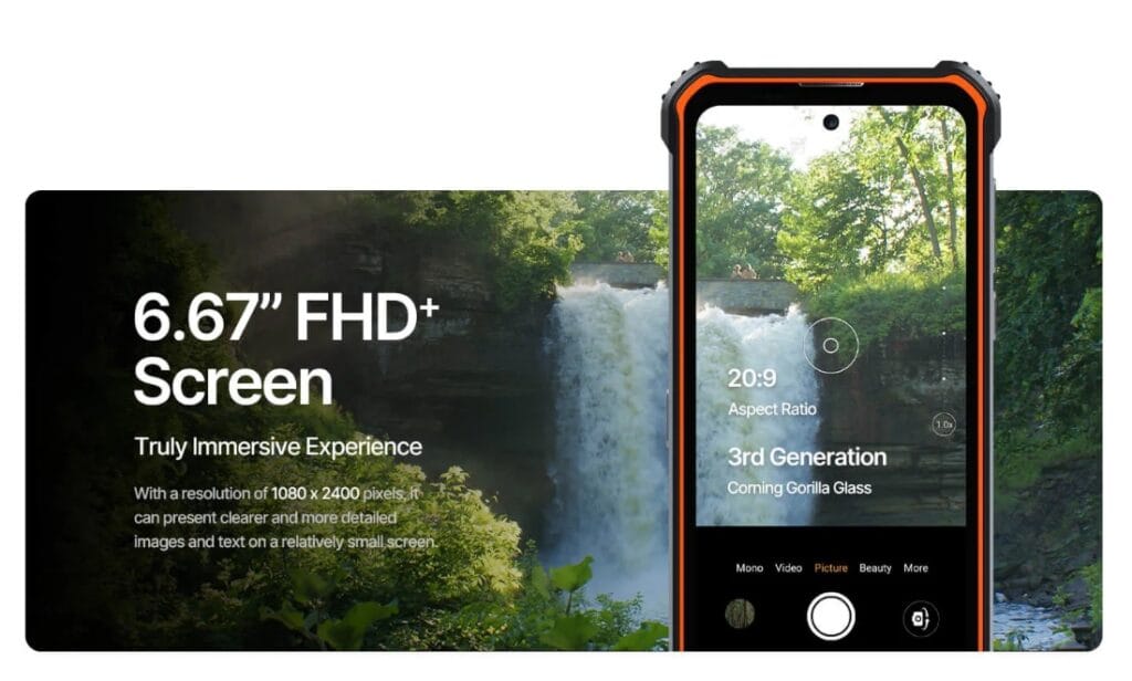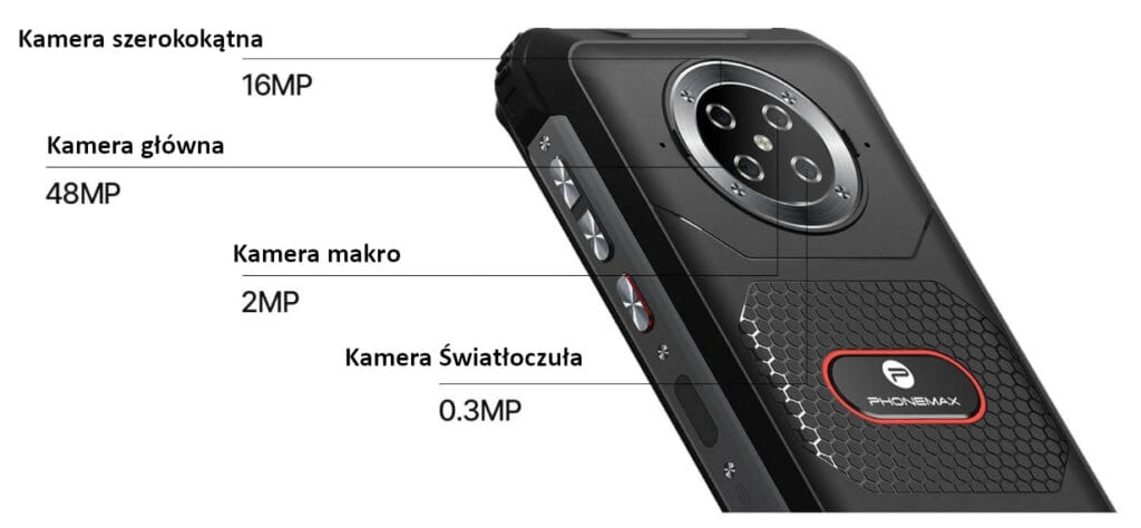 Phonemax P10 5G został zaprojektowany z myślą o przetrwaniu w ekstremalnych warunkach. Jego obudowa spełnia rygorystyczne normy IP68 i MIL-STD-810G, co oznacza, że jest odporny na wodę, kurz, błoto, wibracje i upadki z wysokości. Bez względu na to, gdzie się znajdujesz – w górskich terenach, na pustyni czy w miejscu o wysokiej wilgotności – P10 poradzi sobie w każdych warunkach. Trwałość urządzenia zwiększa dodatkowo metalowa rama, która chroni smartfon przed uszkodzeniami.