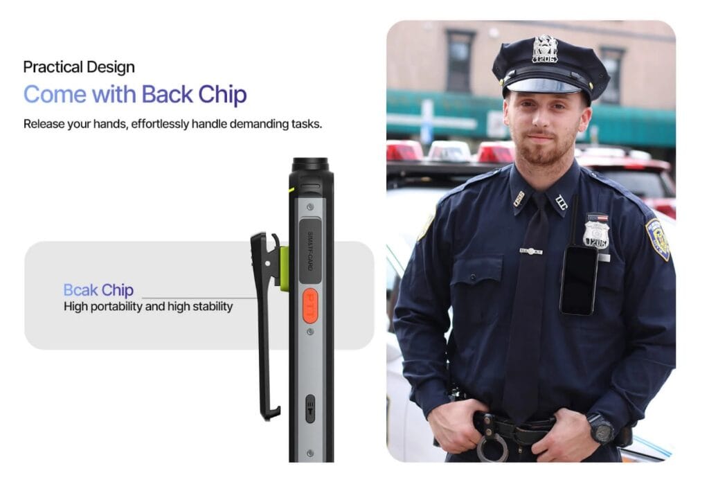 Phonemax R4 Pro posiada praktyczny uchwyt typu back clip, który zapewnia wygodę i bezpieczeństwo podczas użytkowania w trudnych warunkach. Dzięki temu solidnemu zaczepowi, możesz łatwo przymocować telefon do pasa, plecaka lub odzieży, co umożliwia szybki dostęp do urządzenia bez potrzeby trzymania go w ręce. Uchwyt back clip jest idealny dla osób pracujących w terenie, podróżników czy entuzjastów outdooru, oferując pełną swobodę ruchu i jednocześnie gwarantując, że telefon zawsze będzie pod ręką.