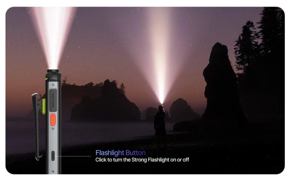 Phonemax R4 Pro jest wyposażony w jasną, wbudowaną latarkę, która doskonale sprawdzi się w sytuacjach awaryjnych lub w miejscach o ograniczonym oświetleniu. Dzięki temu funkcjonalnemu narzędziu masz pewność, że poradzisz sobie w każdych warunkach – podczas nocnych wypraw, pracy na zewnątrz czy w razie nagłej potrzeby światła. Latarka jest łatwa w obsłudze i może być uruchamiana szybko za pomocą jednego kliknięcia, co czyni ją idealnym rozwiązaniem zarówno do codziennego użytku, jak i ekstremalnych zadań.